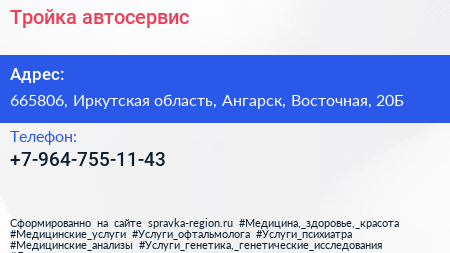 Тройка, автосервис по адресу 665806, Иркутская область, Ангарск, Восточная, 20Б в дальнейшем Организация, размещена в следующих категориях: