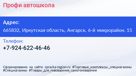 Профи, автошкола по адресу 665832, Иркутская область, Ангарск, 6-й микрорайон, 15 в дальнейшем Организация, размещена в следующих категориях: