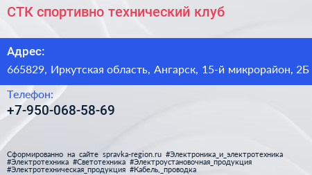 СТК, спортивно-технический клуб по адресу 665829, Иркутская область, Ангарск, 15-й микрорайон, 2Б в дальнейшем Организация, размещена в следующих категориях: