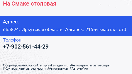 На Смаке, столовая по адресу 665824, Иркутская область, Ангарск, 215-й квартал, ст3 в дальнейшем Организация, размещена в следующих категориях: