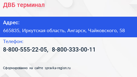 ДВБ, терминал по адресу 665835, Иркутская область, Ангарск, Чайковского, 58 в дальнейшем Организация, размещена в следующих категориях:
