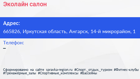 Эколайн, салон по адресу 665826, Иркутская область, Ангарск, 14-й микрорайон, 1 в дальнейшем Организация, размещена в следующих категориях: