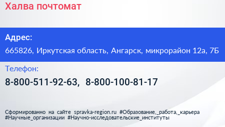 Халва, почтомат по адресу 665826, Иркутская область, Ангарск, микрорайон 12а, 7Б в дальнейшем Организация, размещена в следующих категориях:
