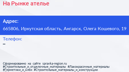 На Рынке, ателье по адресу 665806, Иркутская область, Ангарск, Олега Кошевого, 19 в дальнейшем Организация, размещена в следующих категориях: