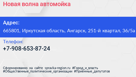 Новая волна, автомойка по адресу 665801, Иркутская область, Ангарск, 251-й квартал, 36/5а в дальнейшем Организация, размещена в следующих категориях: