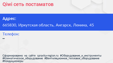 Qiwi, сеть постаматов по адресу 665830, Иркутская область, Ангарск, Ленина, 45 в дальнейшем Организация, размещена в следующих категориях:
