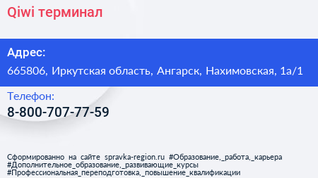 Qiwi, терминал по адресу 665806, Иркутская область, Ангарск, Нахимовская, 1а/1 в дальнейшем Организация, размещена в следующих категориях: