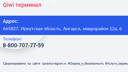 Qiwi, терминал по адресу 665827, Иркутская область, Ангарск, микрорайон 12а, 6 в дальнейшем Организация, размещена в следующих категориях: