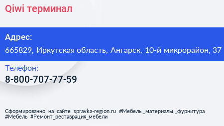 Qiwi, терминал по адресу 665829, Иркутская область, Ангарск, 10-й микрорайон, 37 в дальнейшем Организация, размещена в следующих категориях: