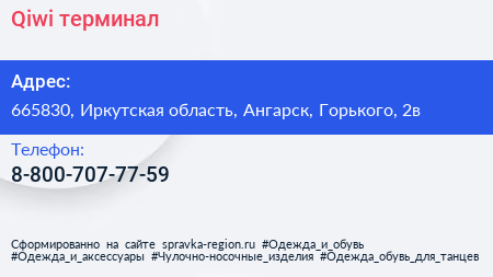 Qiwi, терминал по адресу 665830, Иркутская область, Ангарск, Горького, 2в в дальнейшем Организация, размещена в следующих категориях: