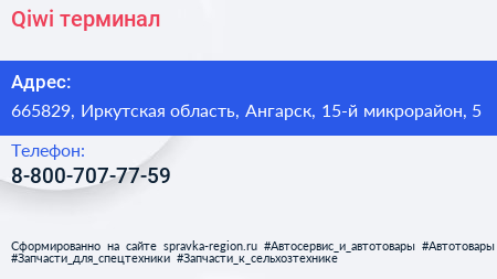 Qiwi, терминал по адресу 665829, Иркутская область, Ангарск, 15-й микрорайон, 5 в дальнейшем Организация, размещена в следующих категориях: