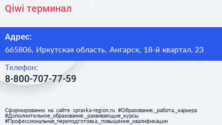 Qiwi, терминал по адресу 665806, Иркутская область, Ангарск, 18-й квартал, 23 в дальнейшем Организация, размещена в следующих категориях: