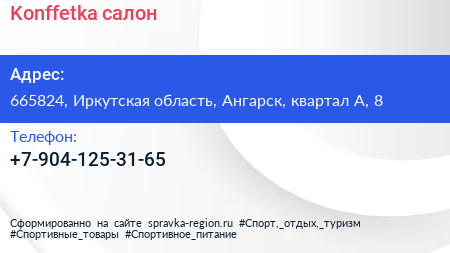 Konffetka, салон по адресу 665824, Иркутская область, Ангарск, квартал А, 8 в дальнейшем Организация, размещена в следующих категориях: