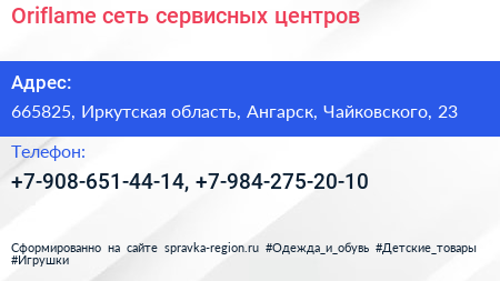Oriflame, сеть сервисных центров по адресу 665825, Иркутская область, Ангарск, Чайковского, 23 в дальнейшем Организация, размещена в следующих категориях:
