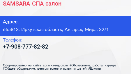SAMSARA, СПА-салон по адресу 665813, Иркутская область, Ангарск, Мира, 32/1 в дальнейшем Организация, размещена в следующих категориях: