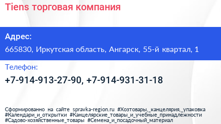 Tiens, торговая компания по адресу 665830, Иркутская область, Ангарск, 55-й квартал, 1 в дальнейшем Организация, размещена в следующих категориях: