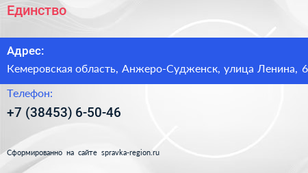 Единство по адресу Кемеровская область, Анжеро-Судженск, улица Ленина, 6 в дальнейшем Организация, размещена в следующих категориях:
