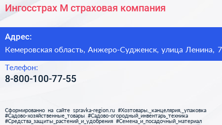 Ингосстрах-М, страховая компания по адресу Кемеровская область, Анжеро-Судженск, улица Ленина, 7 в дальнейшем Организация, размещена в следующих категориях: