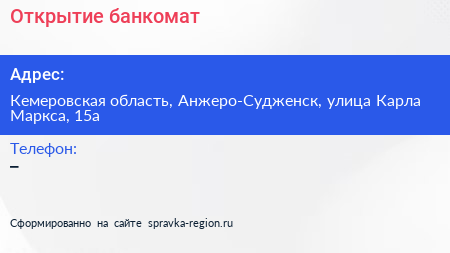 Открытие, банкомат по адресу Кемеровская область, Анжеро-Судженск, улица Карла Маркса, 15а в дальнейшем Организация, размещена в следующих категориях: