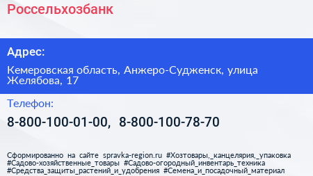 Россельхозбанк по адресу Кемеровская область, Анжеро-Судженск, улица Желябова, 17 в дальнейшем Организация, размещена в следующих категориях: