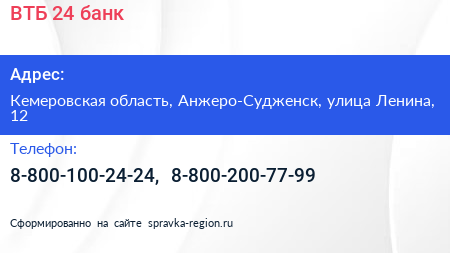 ВТБ 24, банк по адресу Кемеровская область, Анжеро-Судженск, улица Ленина, 12 в дальнейшем Организация, размещена в следующих категориях: