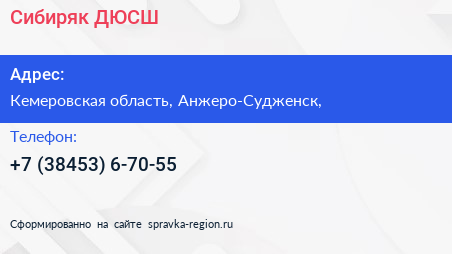 Сибиряк, ДЮСШ по адресу Кемеровская область, Анжеро-Судженск, в дальнейшем Организация, размещена в следующих категориях: