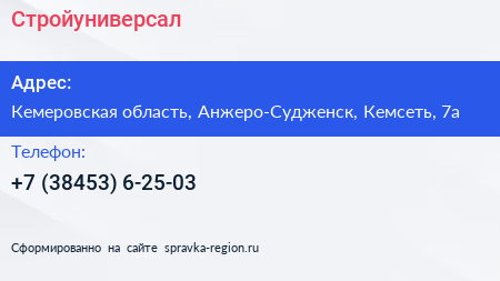 Стройуниверсал по адресу Кемеровская область, Анжеро-Судженск, Кемсеть, 7а в дальнейшем Организация, размещена в следующих категориях: