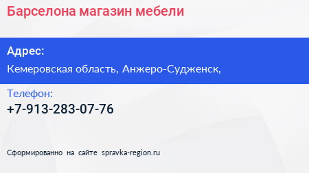 Барселона,, магазин мебели по адресу Кемеровская область, Анжеро-Судженск, в дальнейшем Организация, размещена в следующих категориях: