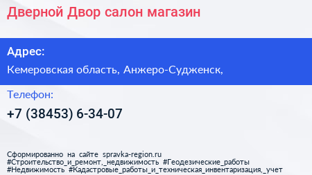 Дверной Двор, салон-магазин по адресу Кемеровская область, Анжеро-Судженск, в дальнейшем Организация, размещена в следующих категориях: