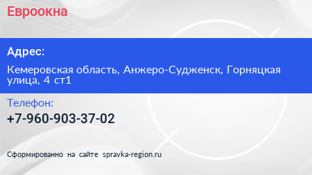 Евроокна по адресу Кемеровская область, Анжеро-Судженск, Горняцкая улица, 4 ст1 в дальнейшем Организация, размещена в следующих категориях: