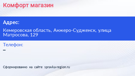 Комфорт, магазин по адресу Кемеровская область, Анжеро-Судженск, улица Матросова, 129 в дальнейшем Организация, размещена в следующих категориях: