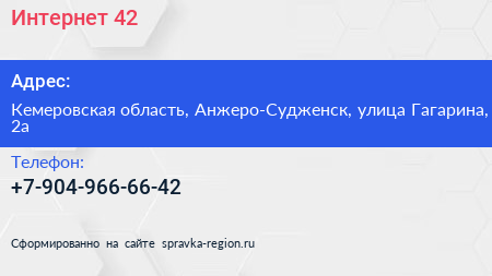 Интернет 42 по адресу Кемеровская область, Анжеро-Судженск, улица Гагарина, 2а в дальнейшем Организация, размещена в следующих категориях: