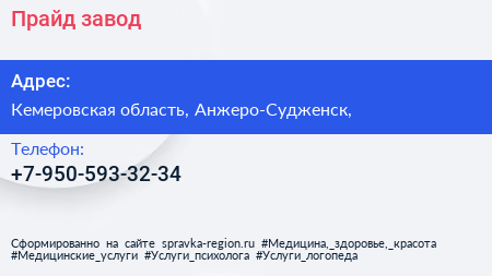 Прайд, завод по адресу Кемеровская область, Анжеро-Судженск, в дальнейшем Организация, размещена в следующих категориях:
