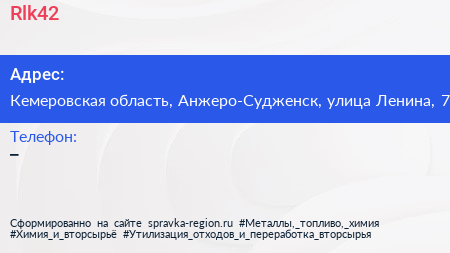 Rlk42 по адресу Кемеровская область, Анжеро-Судженск, улица Ленина, 7 в дальнейшем Организация, размещена в следующих категориях: