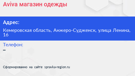 Аviva, магазин одежды по адресу Кемеровская область, Анжеро-Судженск, улица Ленина, 16 в дальнейшем Организация, размещена в следующих категориях: