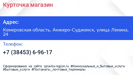 Адрес: Кемеровская область, Анжеро-Судженск, улица Ленина, 24