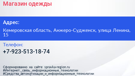 Магазин одежды по адресу Кемеровская область, Анжеро-Судженск, улица Ленина, 15 в дальнейшем Организация, размещена в следующих категориях: