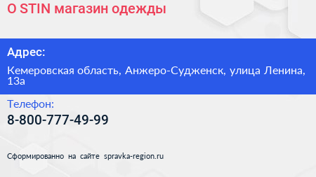 O`STIN, магазин одежды по адресу Кемеровская область, Анжеро-Судженск, улица Ленина, 13а в дальнейшем Организация, размещена в следующих категориях: