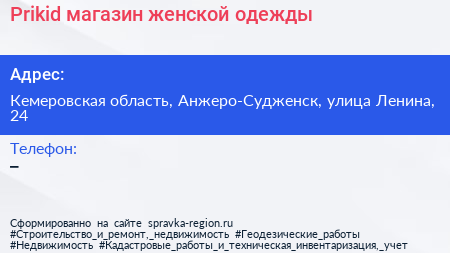 Prikid, магазин женской одежды по адресу Кемеровская область, Анжеро-Судженск, улица Ленина, 24 в дальнейшем Организация, размещена в следующих категориях: