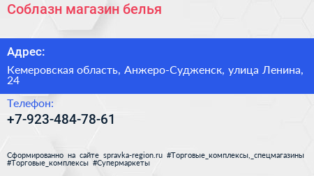 Соблазн, магазин белья по адресу Кемеровская область, Анжеро-Судженск, улица Ленина, 24 в дальнейшем Организация, размещена в следующих категориях: