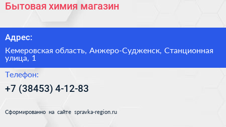 Бытовая химия, магазин по адресу Кемеровская область, Анжеро-Судженск, Станционная улица, 1 в дальнейшем Организация, размещена в следующих категориях: