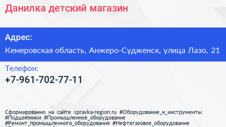 Данилка, детский магазин по адресу Кемеровская область, Анжеро-Судженск, улица Лазо, 21 в дальнейшем Организация, размещена в следующих категориях: