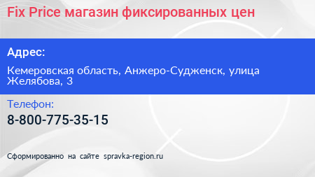 Fix Price, магазин фиксированных цен по адресу Кемеровская область, Анжеро-Судженск, улица Желябова, 3 в дальнейшем Организация, размещена в следующих категориях: