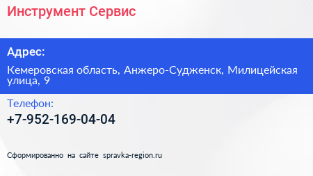 Инструмент-Сервис по адресу Кемеровская область, Анжеро-Судженск, Милицейская улица, 9 в дальнейшем Организация, размещена в следующих категориях:
