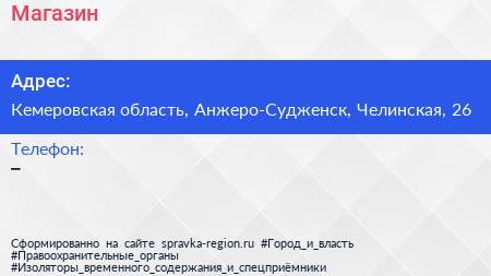 Магазин по адресу Кемеровская область, Анжеро-Судженск, Челинская, 26 в дальнейшем Организация, размещена в следующих категориях: