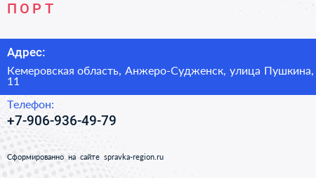 П.О.Р.Т. по адресу Кемеровская область, Анжеро-Судженск, улица Пушкина, 11 в дальнейшем Организация, размещена в следующих категориях: