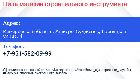Пила, магазин строительного инструмента по адресу Кемеровская область, Анжеро-Судженск, Горняцкая улица, 4 в дальнейшем Организация, размещена в следующих категориях: