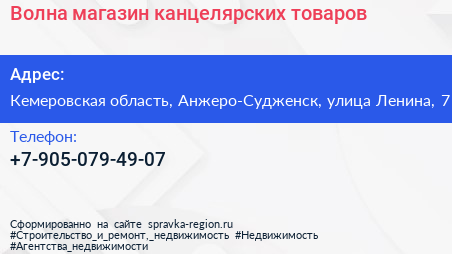 Волна, магазин канцелярских товаров по адресу Кемеровская область, Анжеро-Судженск, улица Ленина, 7 в дальнейшем Организация, размещена в следующих категориях: