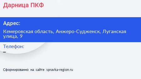 Дарница, ПКФ по адресу Кемеровская область, Анжеро-Судженск, Луганская улица, 9 в дальнейшем Организация, размещена в следующих категориях: