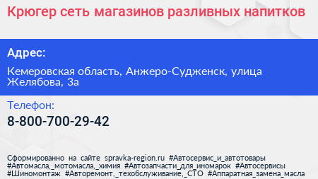 Крюгер, сеть магазинов разливных напитков по адресу Кемеровская область, Анжеро-Судженск, улица Желябова, 3а в дальнейшем Организация, размещена в следующих категориях: